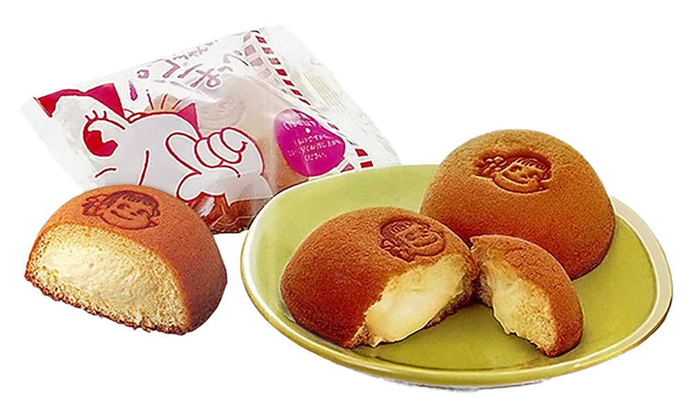 Fujiya introduced “Peko-chan no Hoppe,” a soft, cream-filled sponge cake known for its light, fluffy texture and gentle sweetness. It quickly became a long-time favorite among children and adults alike.